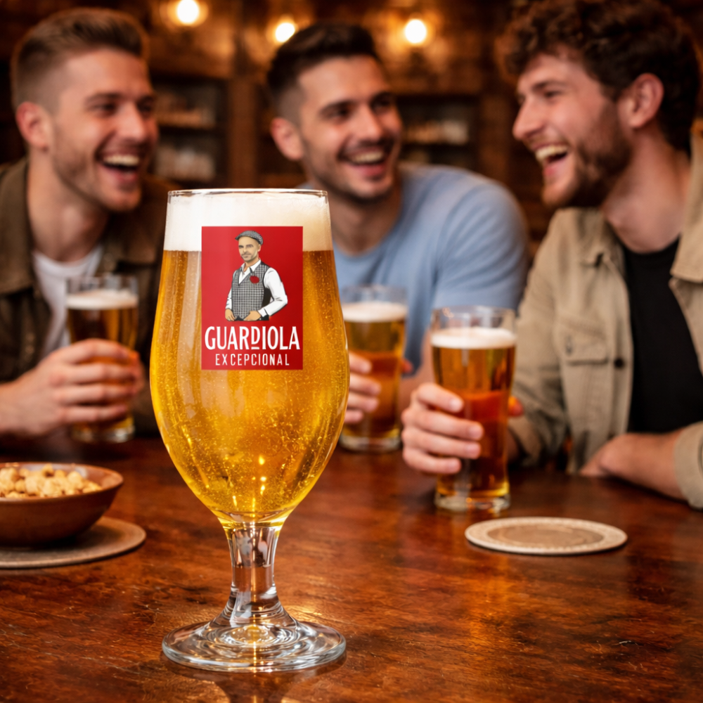 Enjoy a pint like a true City fan with this Pep Guardiola Madri-style stemmed glass. Perfect for Manchester City supporters, great for home bars or as a unique gift.