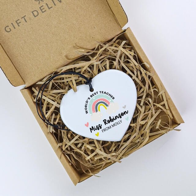 Our keepsake ceramic hearts are a gorgeous gift to send your appreciation this end of term. Our hearts measure at 7cm in width and delivered in a gift box.